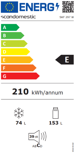 Scandomestic Køle-/fryseskab med 153 L kølekapacitet og 74 L frysekapacitet. Læs hele beskrivelsen