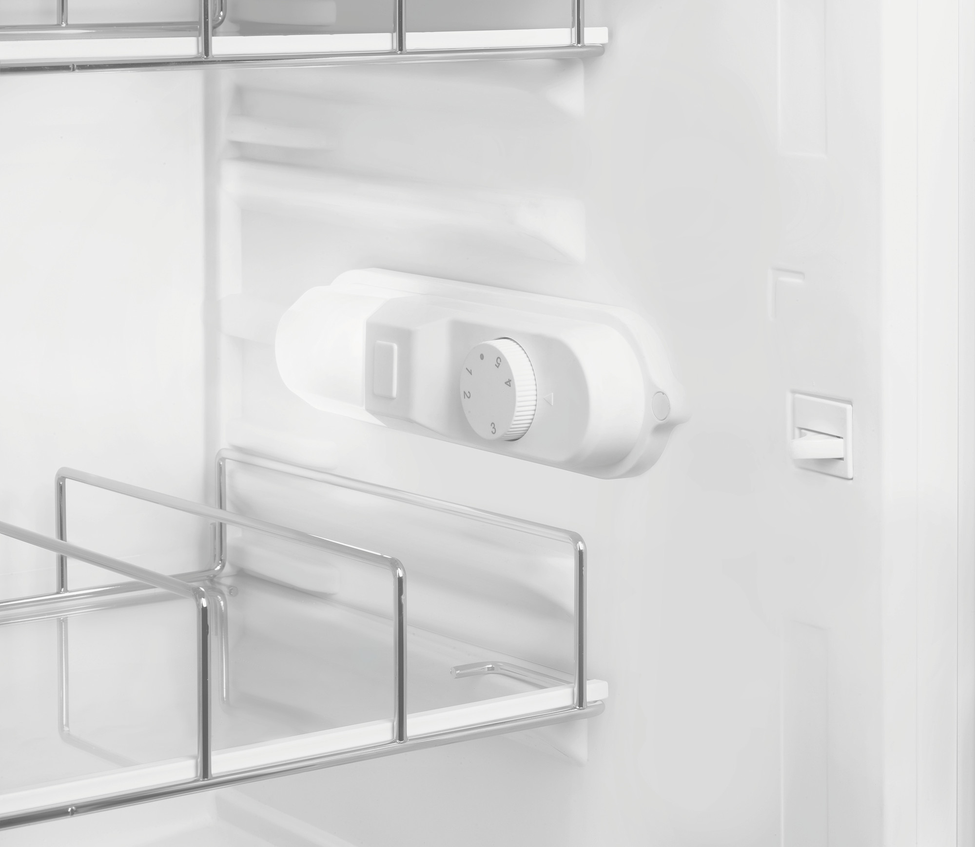 Køleskabet er udstyret med No-Frost teknologi, som forhindrer dannelse af is i fryseren og sikrer, at du aldrig behøver at afrime det manuelt. Det ventilerede kølesystem sikrer en jævn temperaturfordeling, hvilket holder dine madvarer friske i længere tid.