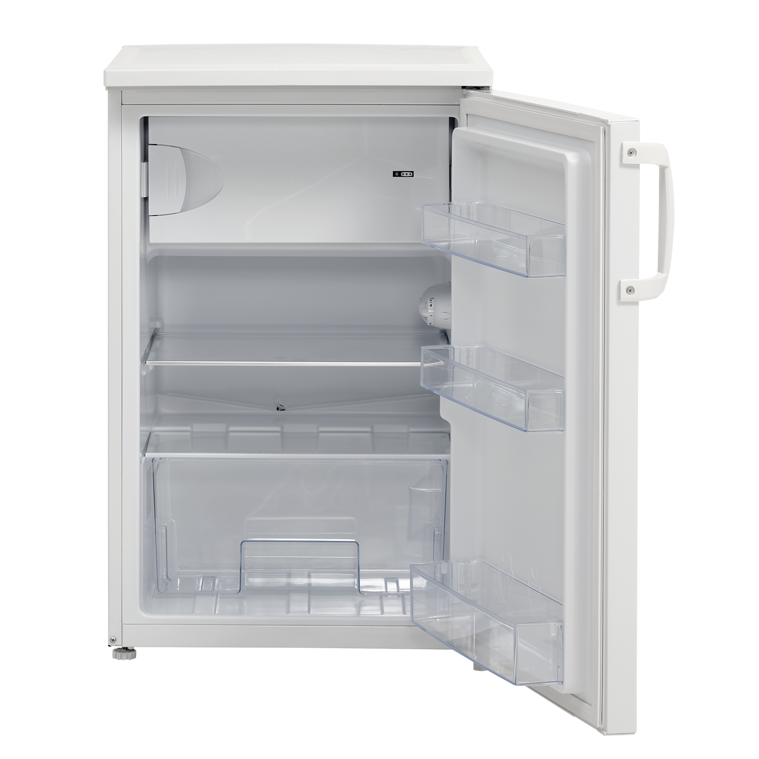 Køleskabet med fryseboks leveres med højre hængslet dør men kan vendes så det bliver venstre hængt. Dermed er det fleksibelt og nemt at placere skabet i de fleste rum. Køleskabet indeholder 3 dørhylder heraf 1 maxi hylde til 2L kartoner og flasker. 1+1 brudsikre glashylder af SafetyGlass. Det betyder, at de er yderst holdbare og brudsikre, skulle uheldet alligevel være ude og der tabes en hylde på gulvet, så splintres den ikke i skarpe stykker.