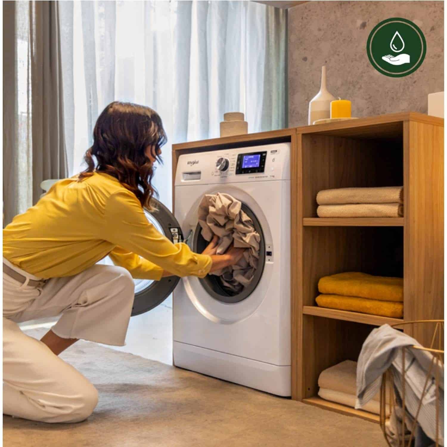 Whirlpools Slim-tørretumbler tilbyder et pladsbesparende design, der giver dig mulighed for at nyde kraftfuld tørreydelse selv i mindre rum.