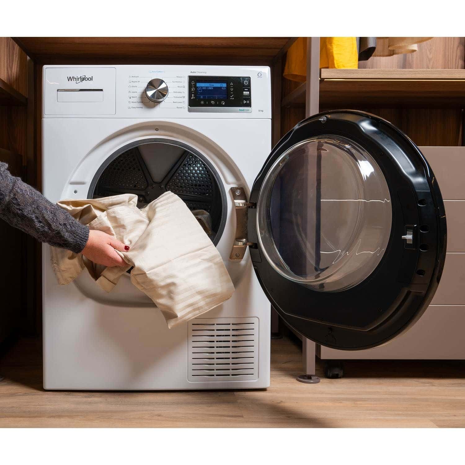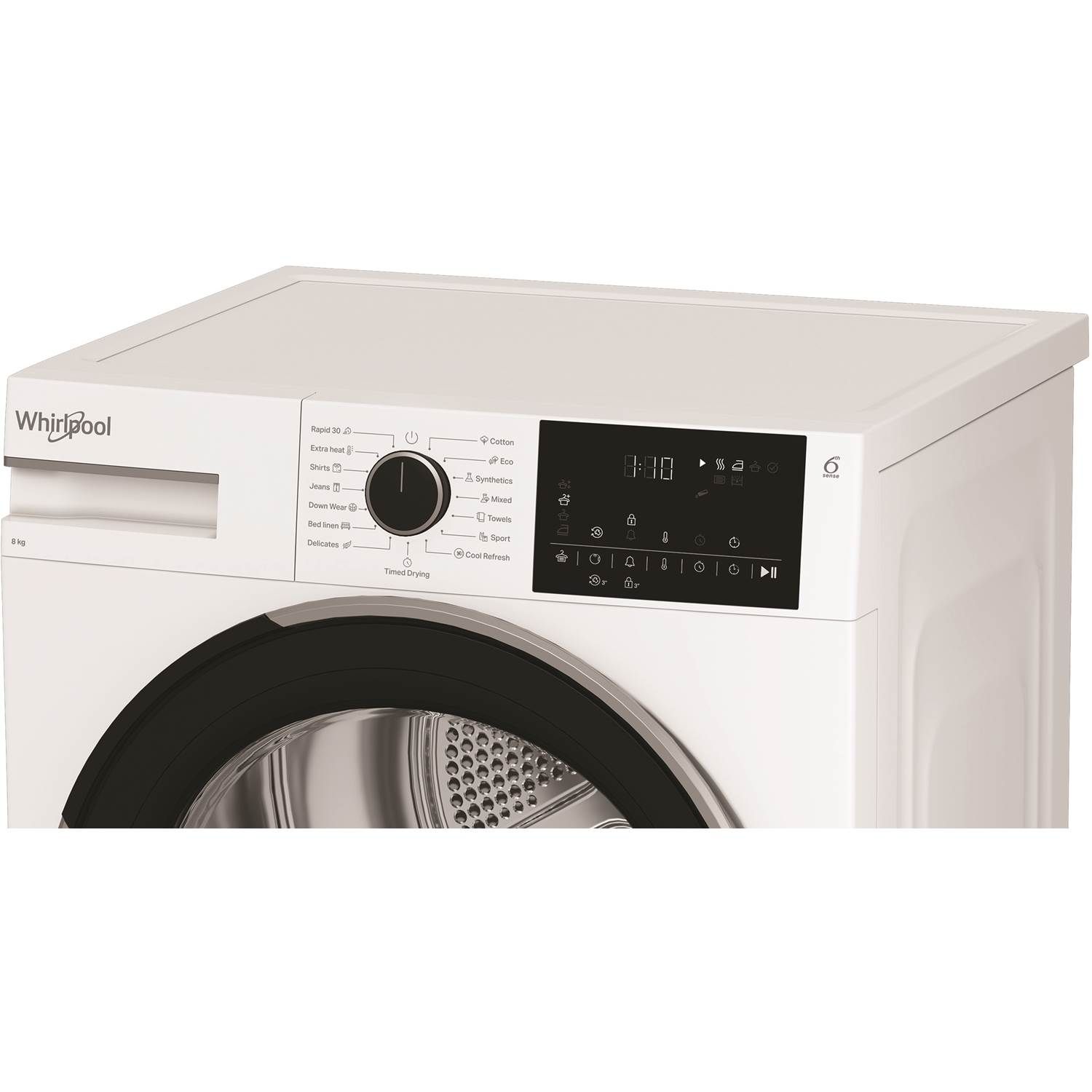 6TH SENSE registrerer automatisk mængden af vasketøj og indstiller den korrekte tørretid, hvilket sikrer det ønskede tørhedsniveau med optimering af tid og energi.